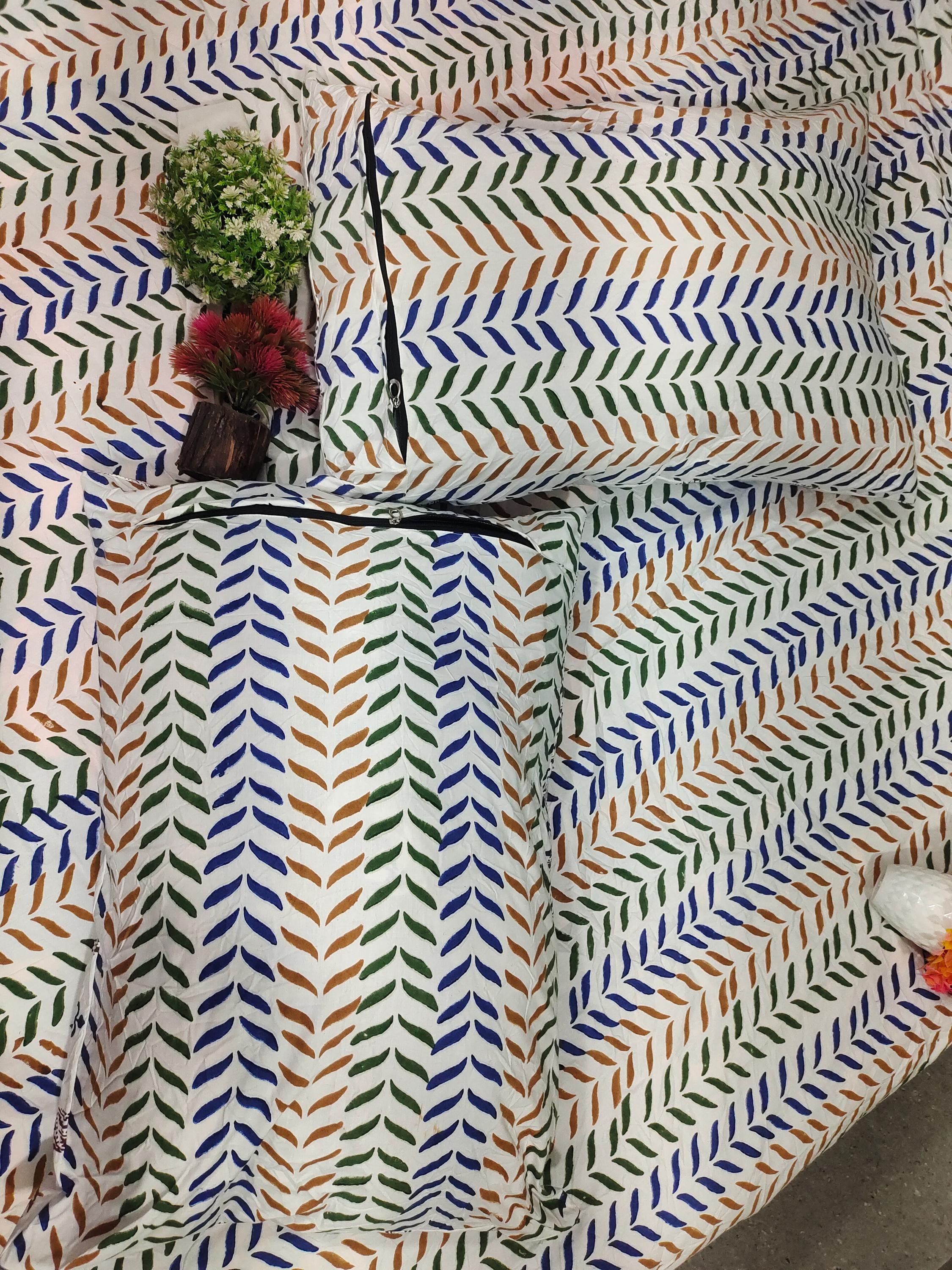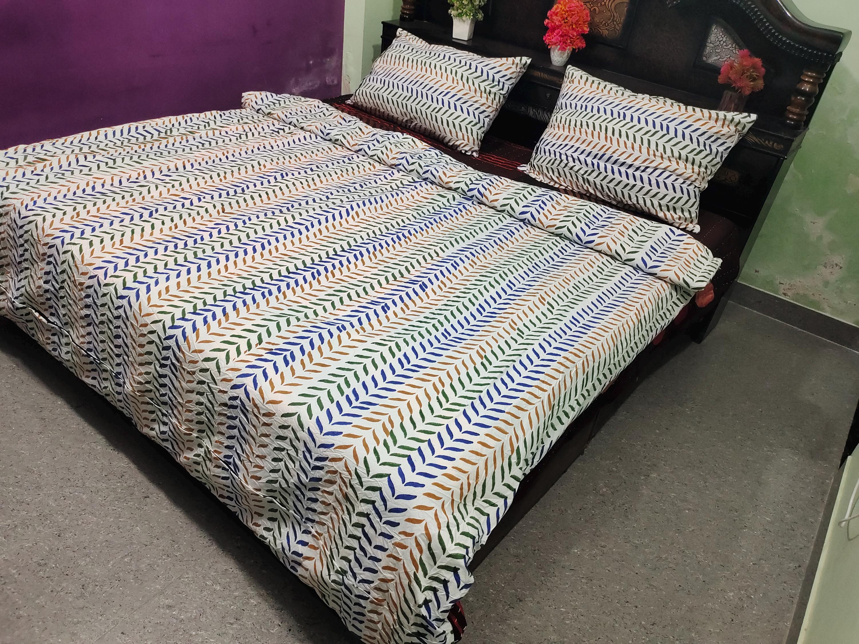 Hand Block Print Cotton Duvet Cover King Size with Pillow Covers | Multicolor Leaf Pattern Bedding Set | Quilt Cover Indian Boho Home Décor,