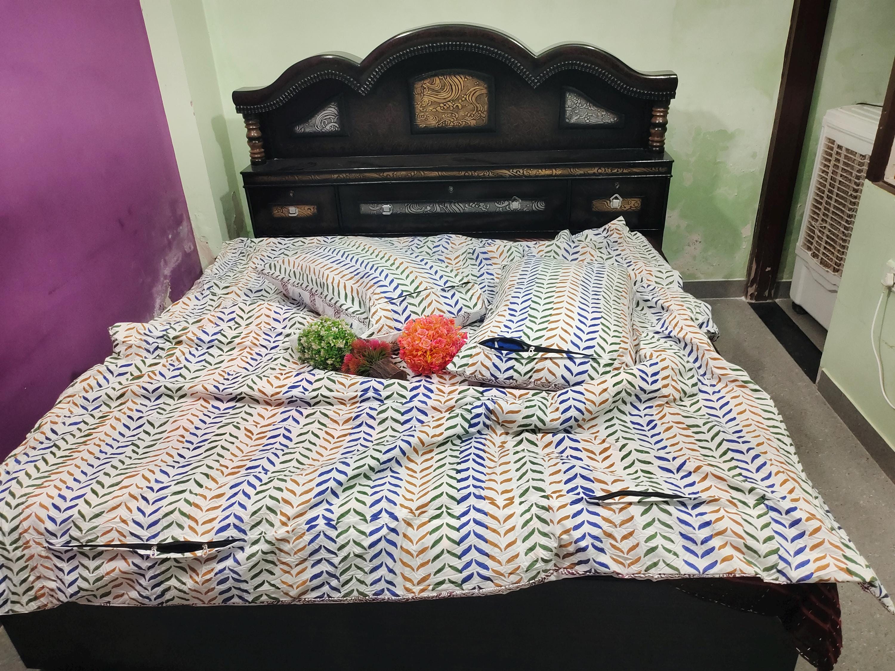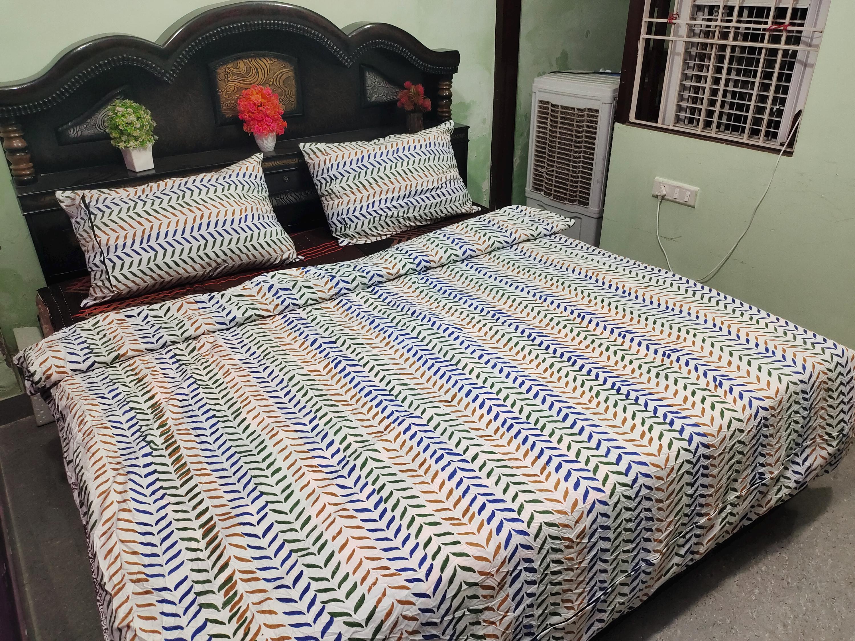 Bring timeless elegance and artisan charm to your bedroom with this handcrafted block print duvet cover set. Featuring a traditional hand-stamped design, each piece is made using the ancient technique of block printing, where skilled artisans carefully press wooden blocks dipped in natural dyes onto soft cotton fabric.